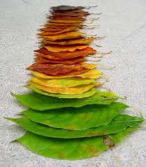 Las hojas tienen 3 pigmentos la clorofila, los carotenoides y las antocianinas. Los pigmentos hacen que las hojas tengan color. Cada vez que los meses se acercan mas a Otoño la clorofila va desapareciendo el color verde y queda el color amarillo de los carotenoides. Y cuando los carotenoides desaparece queda el color marrón en las hojas